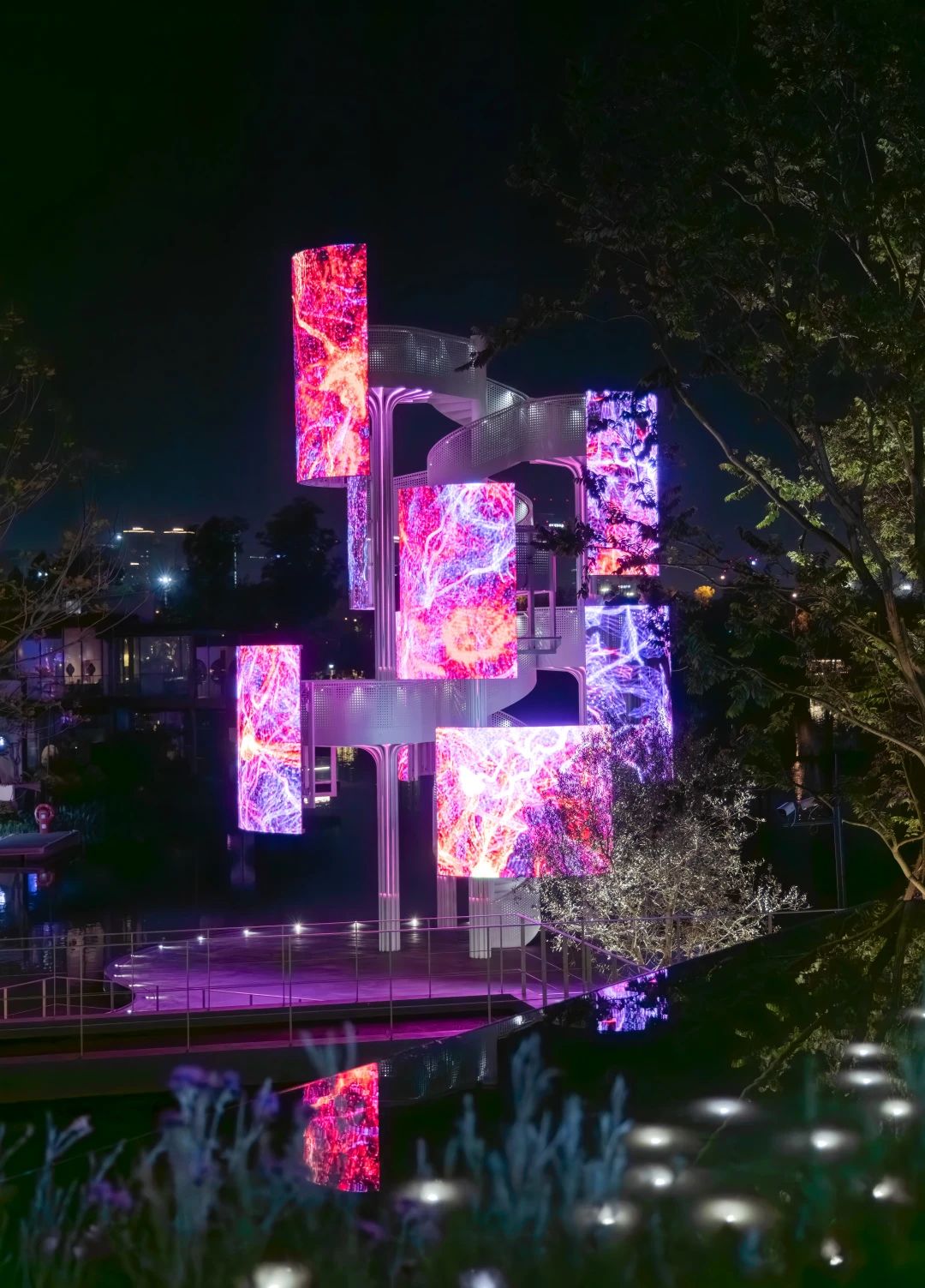 位于成都的麓湖水城是中国独特的陆生生态基底转为湖泊生态基底的成功案例,全球首座水上多媒体美术馆——生命塔就位于这里。利亚德助力打造的生命塔,让麓湖不断拓宽城市艺术表达的边界和维度,也让艺术的无限可能跨入生活的无限可能。